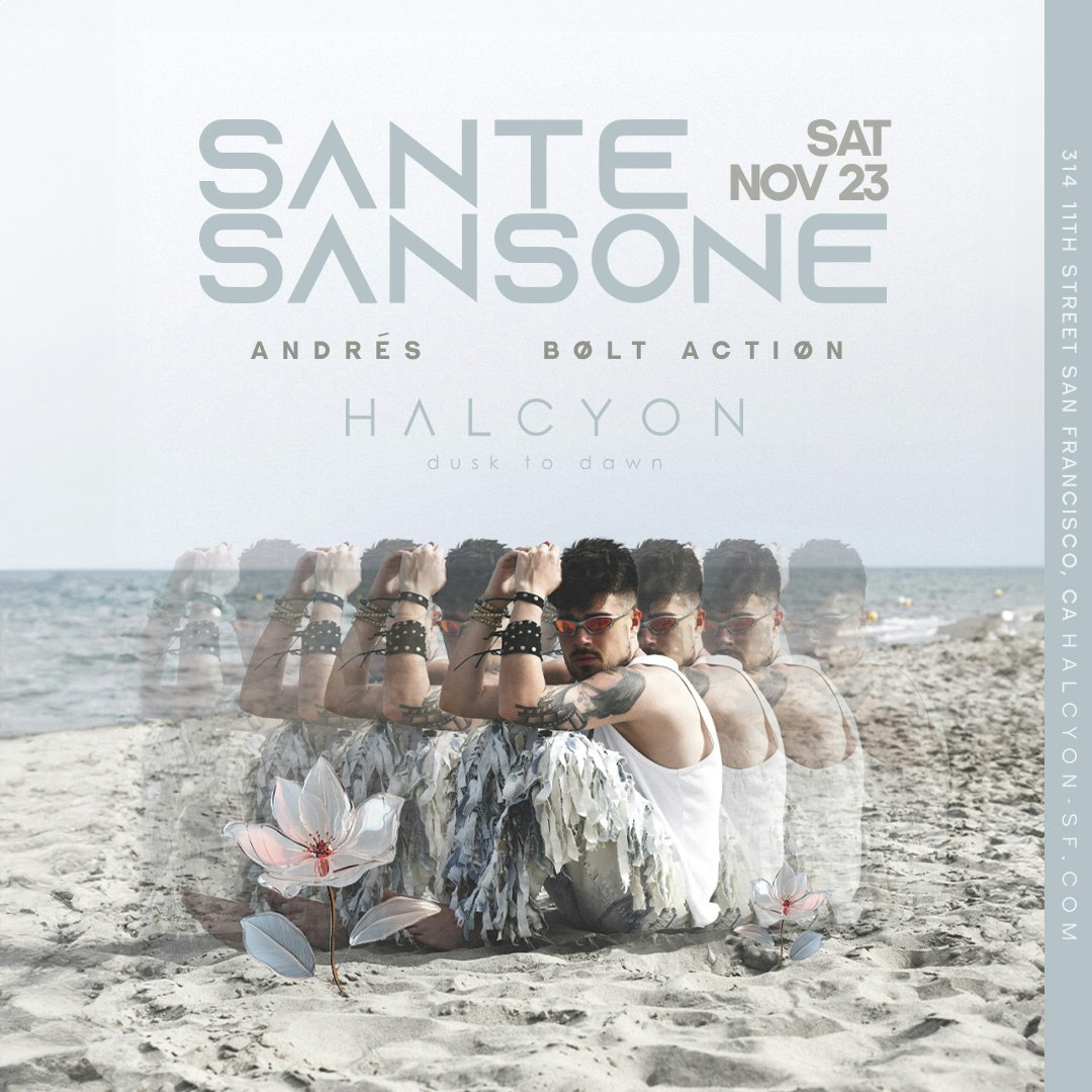 SANTE SANSONE the Italian production whiz has been on fire since his epic remix made "SOMEBODY" the floor-filler of the year! ANDRES + BOLT ACTION support his SF debut! Presented by Halcyon. This is a 21+ event