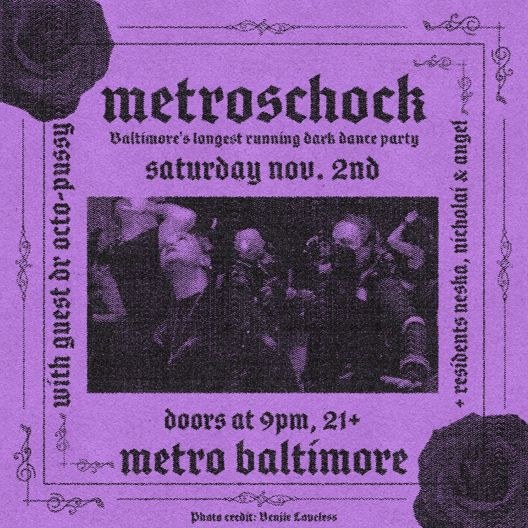 Baltimore's longest running dark dance party returns on the First Saturday of every month with resident DJs Neska, Nicholai and Angel playing dark beats from Goth and Industrial to Synthwave, 80s, 90s + more.