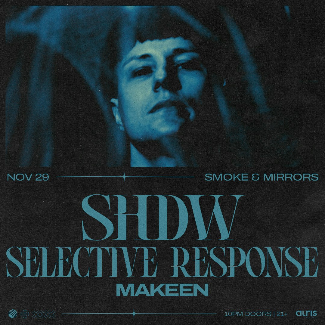 Friday, November 29th, 2024 SHDW + Selective Response Makeen 2045 N Milwaukee Ave Chicago, IL 60647 Doors 10pm - 21+ w/valid ID Presented by Smoke & Mirrors. This is a 21+ event