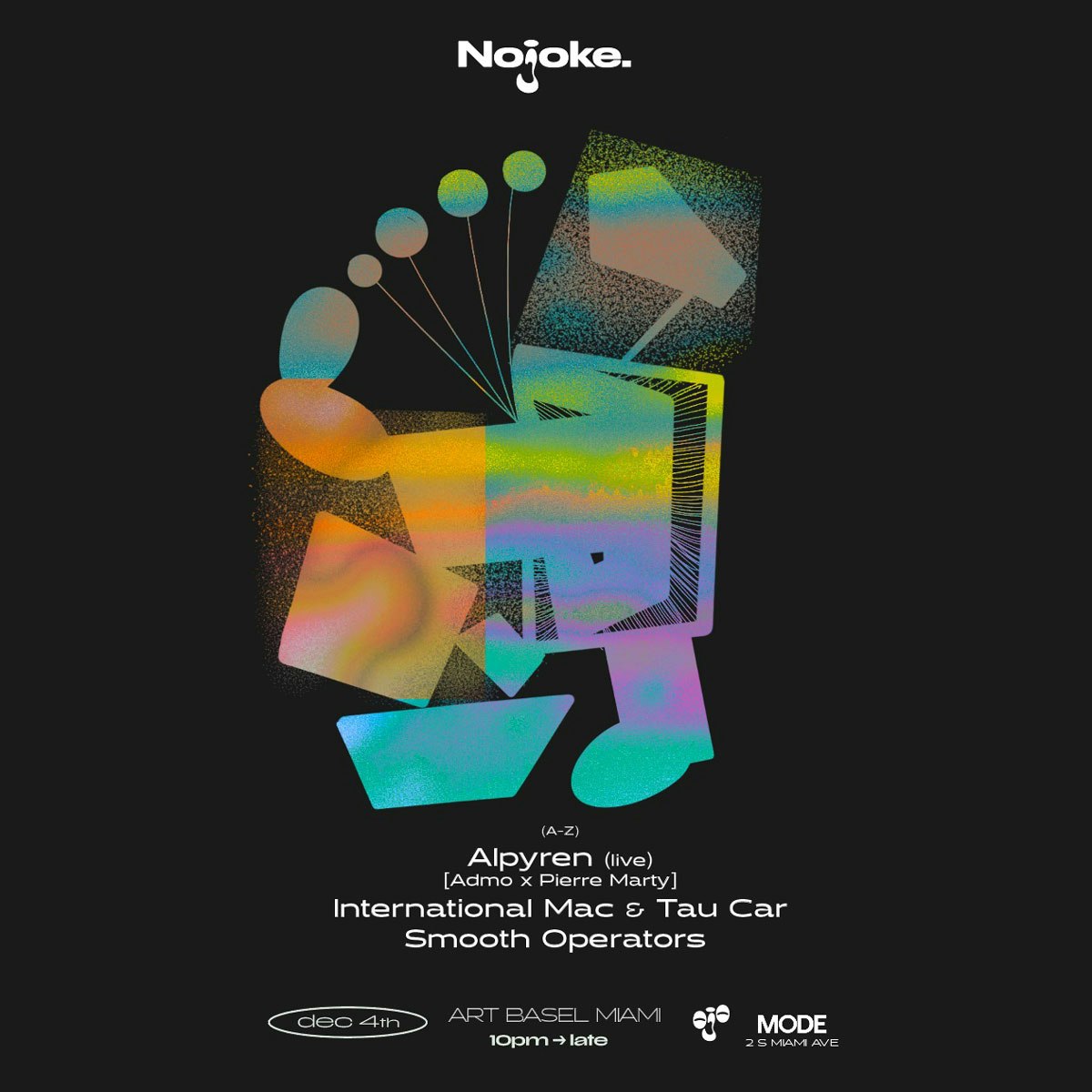 We’re kicking off Art Basel 2024 with Nojoke. —an exclusive night of first-time performances at MODE. Experience the US debut of Alpyren live and the Miami debuts of International Mac & Tau Car and Smooth Operators (Massaï & Lamalice).