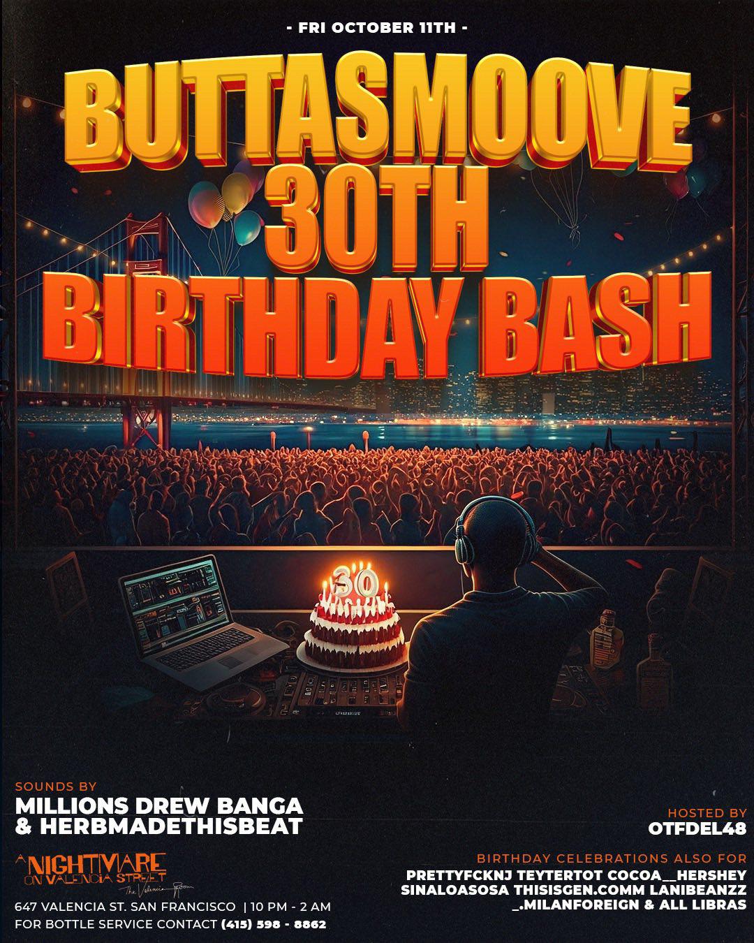 Valencia Fridays ft. Buttasmoove 30th Birthday Bash! Hip Hop vibes to start ur weekend right! Squad Up n Slide Thru. 🔉Music By: @DJMILLIONS55 + @DREWWWWWWW___ + @HERBMADETHISBEAT