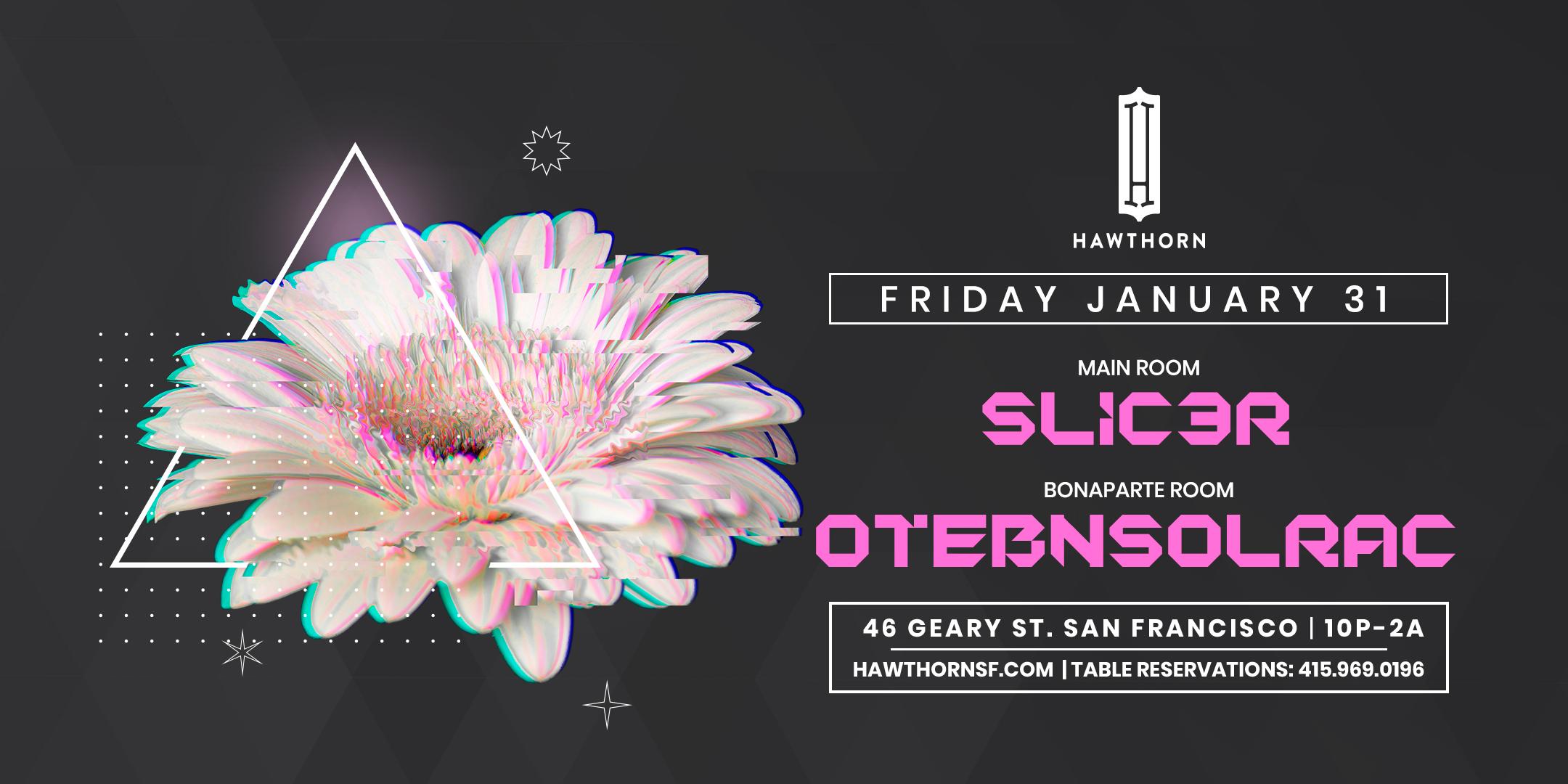 Main Room (Open Format | Hip Hop | Top 40): Slic3r Bonaparte Room (Latin House | Reggaeton): OTEBNSOLRAC RSVP: Free before 11pm; $5 OFF After