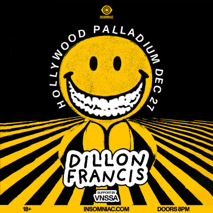 THE HOLLYWOOD PALLADIUM IS ABOUT TO GET WEIRD WITH DILLON FRANCIS! On December 27, Dillon Francis is bringing all his best bangers to LA. Backing him up is VNSSA, the queen of underground house and techno. This is going to be a back-to-back night of epic proportions. Lock in your tickets now!