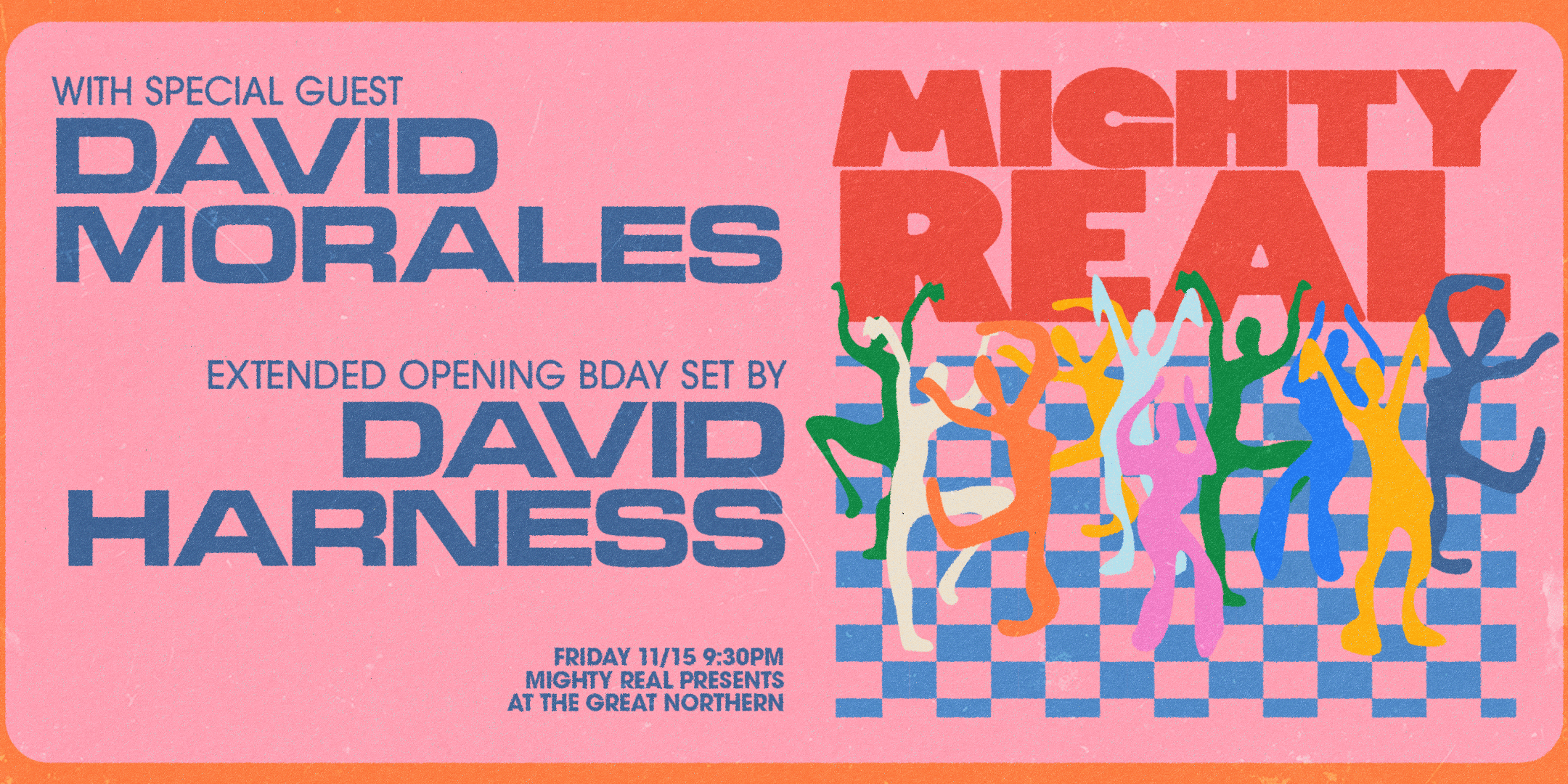 Friday 11/15 Mighty Real celebrates David Harness birthday with a special extended set by him + a special headliner set from David Morales.