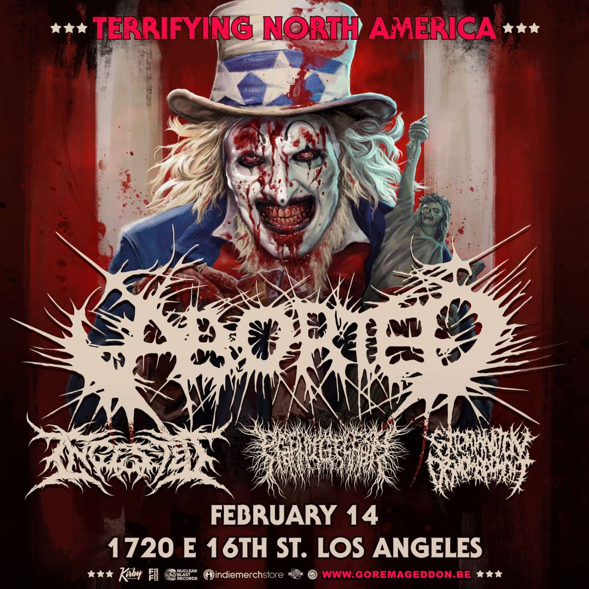 Aborted Ingested Peeling Flesh Extermination Dismemberment all ages RIDE SHARE RECOMMENDED IF YOU MUST DRIVE, PLAN TO ARRIVE EARLY FOR A SPOT CLOSE TO VENUE DO NOT LEAVE VALUABLES IN YOUR CAR No refunds