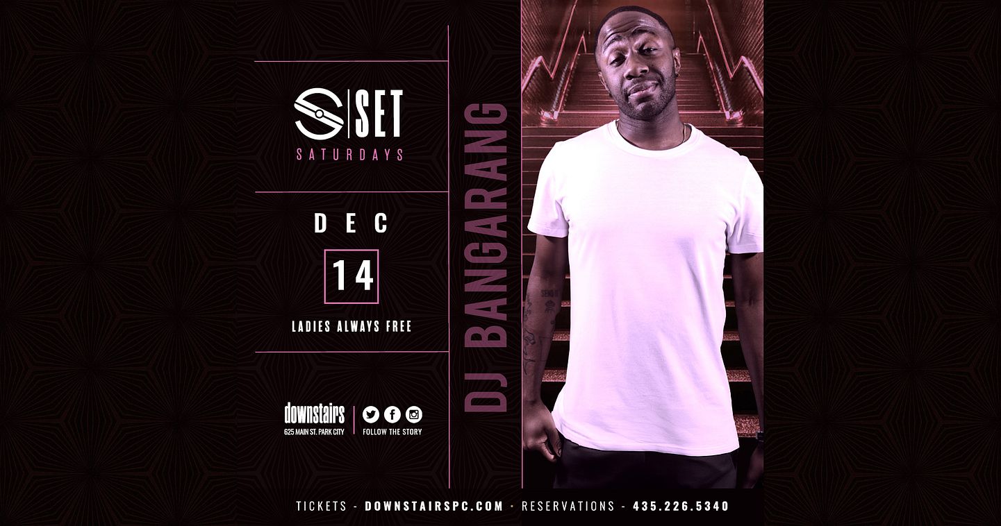 Set Saturdays with DJ Bangarang Doors at 8:30pm Ladies Night