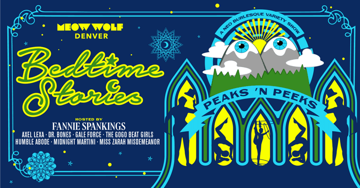 Get ready for another round of Bedtime Stories, Meow Wolf’s neo-burlesque variety show! This time, we’re gearing up for a theme that’s perfectly suited for the Mile High City: PEAKS 'N PEEKS. For this chapter of Bedtimes Stories, we’ve gathered mountains of talent from all around the Rocky Mountain region. PEAKS 'N PEEKS invites you to take more than just a furtive glance; we’re dishing out sights that will pique your interest and amaze your eyes. From circus to drag to tassel twirling, our outrageous and wonderful acts will expand your horizons and show you the pinnacle of performance! Leading this journey through the sumptuous peaks and forbidden valleys of burlesque will be the local legend, Fannie Spankings. Secure your tickets and prepare to summit exhilarating new heights of entertainment!