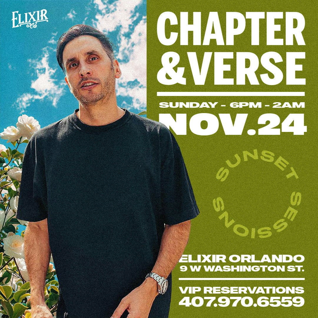 Sunset Sessions at Elixir Orlando showcases house and techno DJs from around the world on an iconic outdoor patio—every Sunday. For this installment, we proudly present the UK's Chapter & Verse on Sunday November 24th.