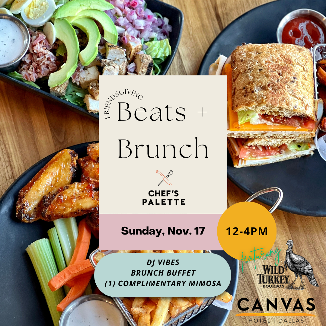 Brunch, beats, and a little Friendsgiving cheer! Join us for a festive buffet and live DJ at CANVAS Hotel.
