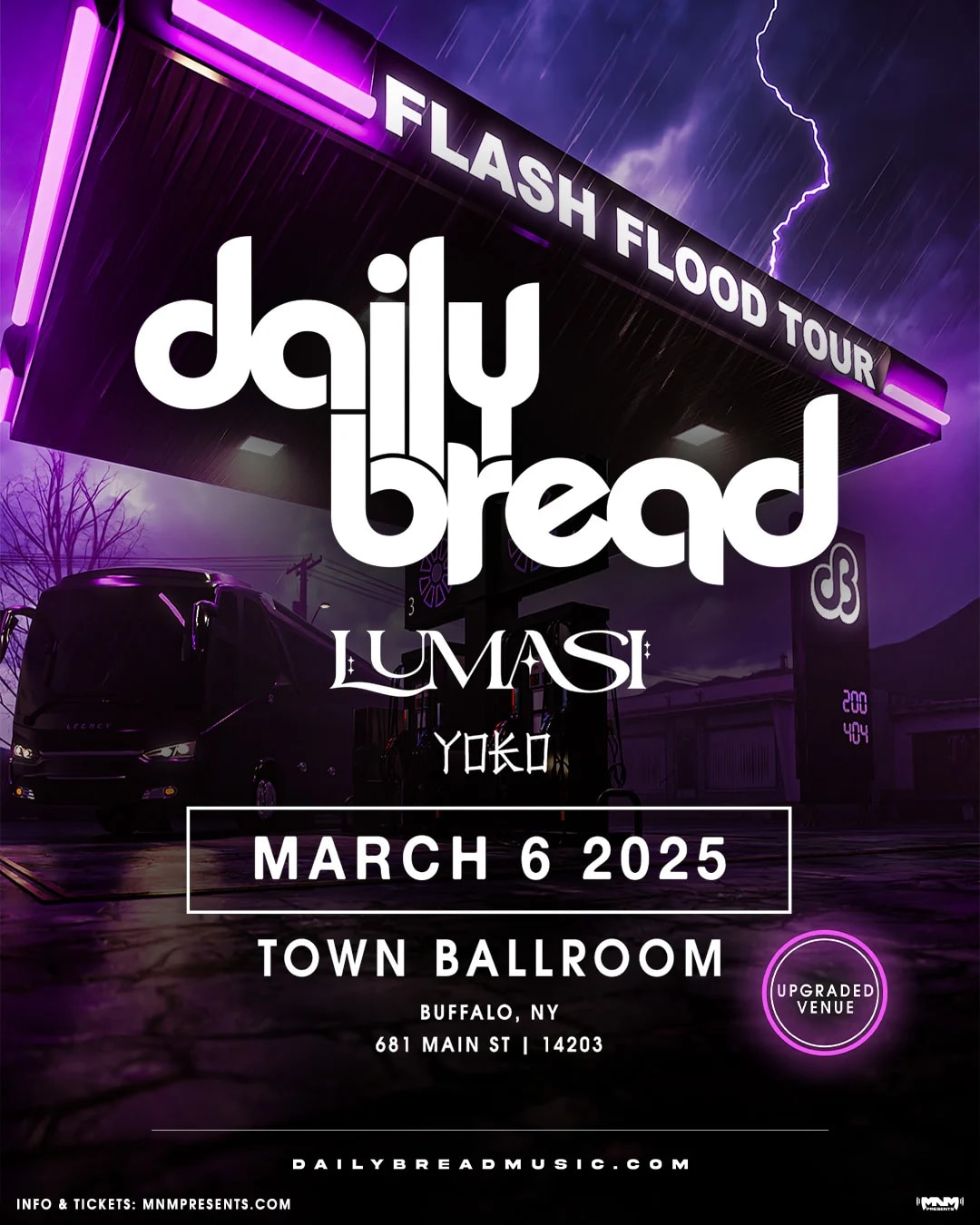 MNM Presents Daily Bread Flash Flood Tour w/ Lumasi, Yoko Thursday March 6, 2025 Town Ballroom 8pm 18+ mnmpresents.com