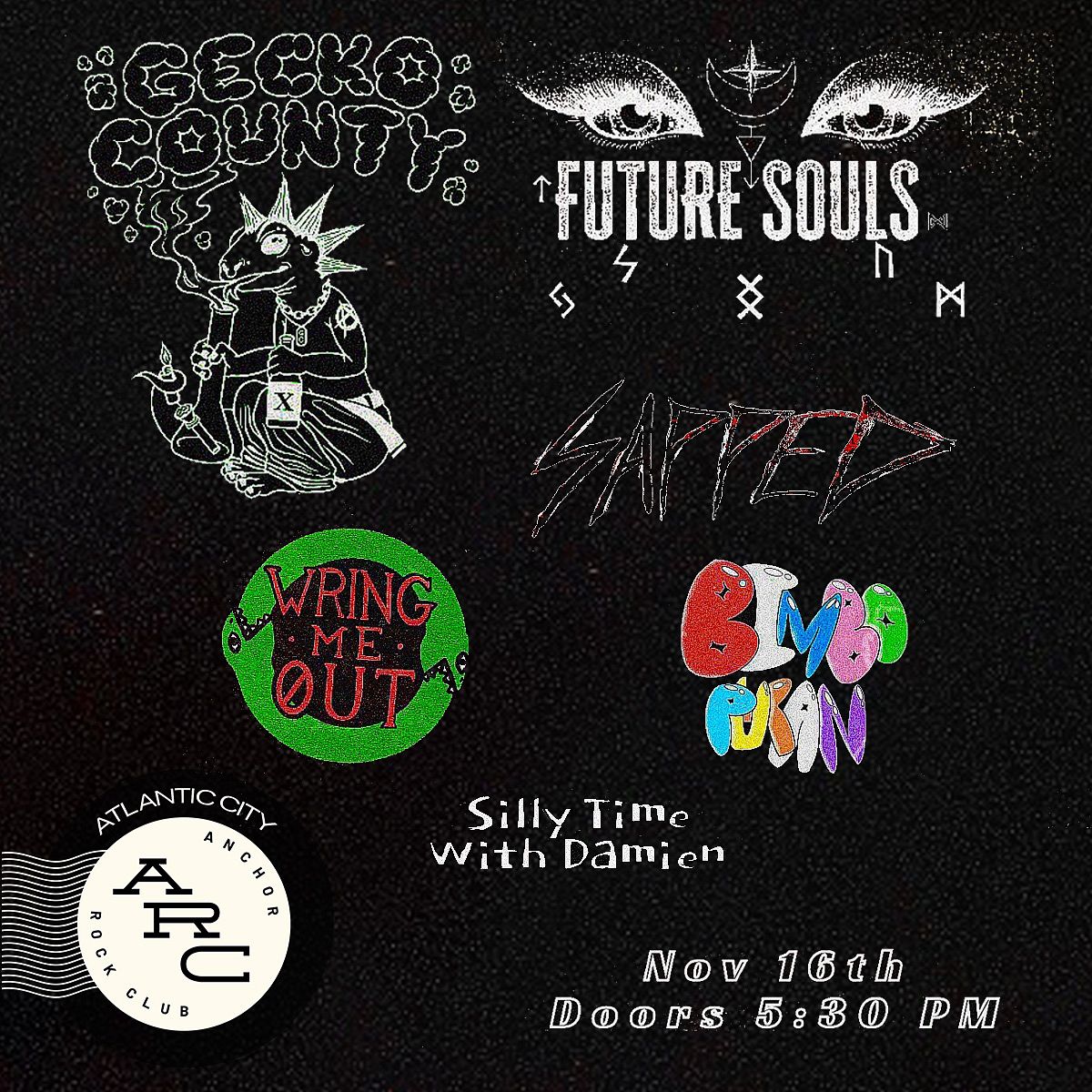 Gecko County // Sapped // Wring Me Out // Future Souls // Bimbo Putan // Silly Time with Damien Doors - 5:30 pm // Showtime - 6:00 pm // 18+ Anchor Rock Club // 247 S New York Avenue // Atlantic City NJ