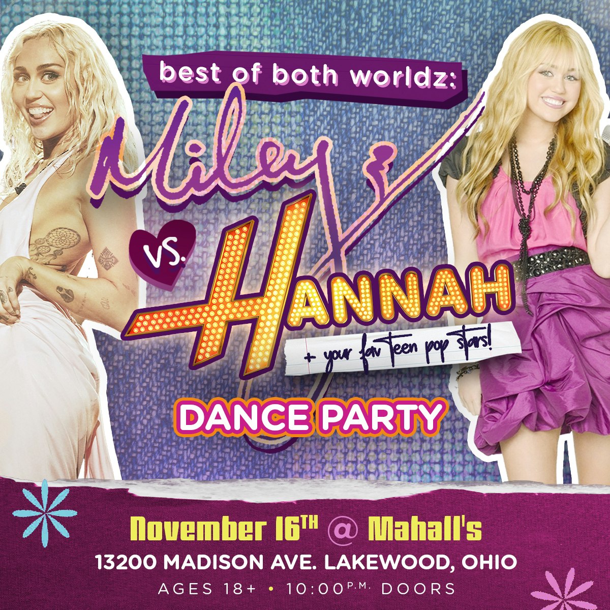Get ready for the best of both worldz: Miley vs Hannah night & all your fav pop stars! Come dance to your favorite Disney Channel Original throwbacks, slumber party approved hits, and Limited-Too core jam. This is what dreams are made of! Put on your fav Y2K look and get ready to sing along to favs like Selena Gomez, Aly & AJ, High School Musical, Camp Rock, Hilary Duff and more!