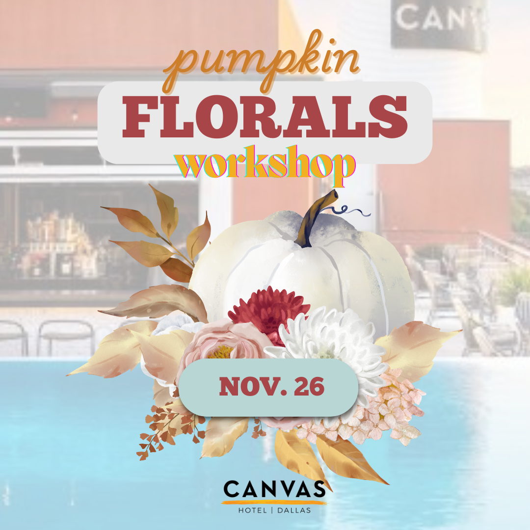Ready to craft your own piece of fall magic? Join us at CANVAS Hotel Dallas on November 26 for an exclusive Pumpkin Floral Workshop on our scenic rooftop! 🍂✨ Guided by a floral design pro, you’ll create a festive, pumpkin-inspired centerpiece that’s perfect for your holiday table or just adding a pop of fall charm to your home.
