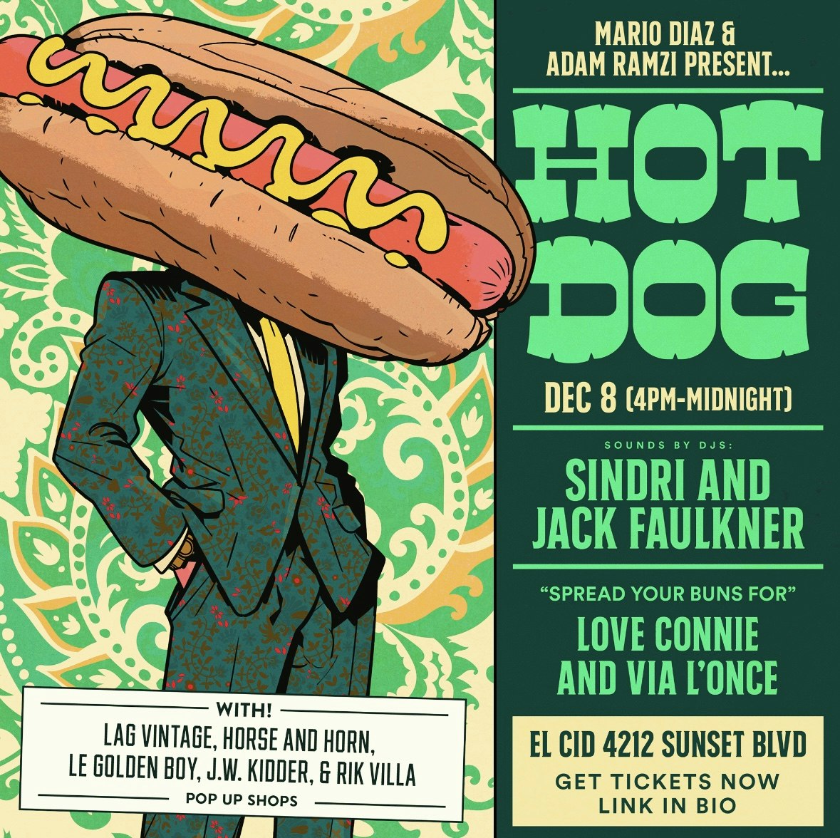 Hot Dog Sundays 4pm-close at Hollywood’s Iconic El Cid. Mario Diaz & Adam Ramzi present your Sunday afternoon Queer Bang. Early arrival encouraged, entry is based on capacity at any given time. Presented by Mario Diaz. This is a 21+ event