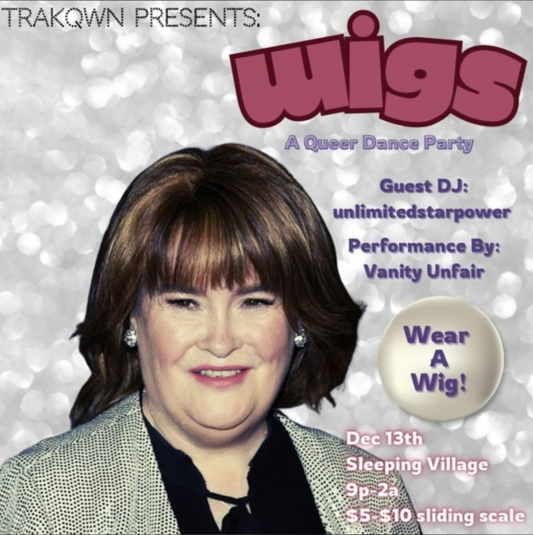 WIGS is a queer-centric party founded by TrakQwn that defies genre to celebrate queer club music through time. Wig themed, the Chicago-based party features local guest DJs and performers with the pursuit of connecting communities thru music on the dancefloor."
