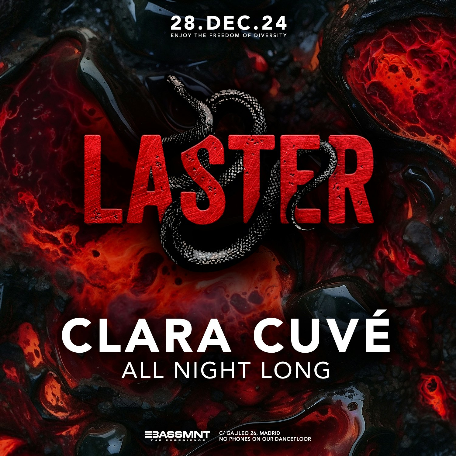 Laster Club CLARA CUVÉ ALL NIGHT LONG 1 copa incluida hasta las 01.30 / 1 drink included till 01.30. Organizado por The Bassement Dreams Factory S.L.. Para mayores de 18 años (necesario traer DNI).