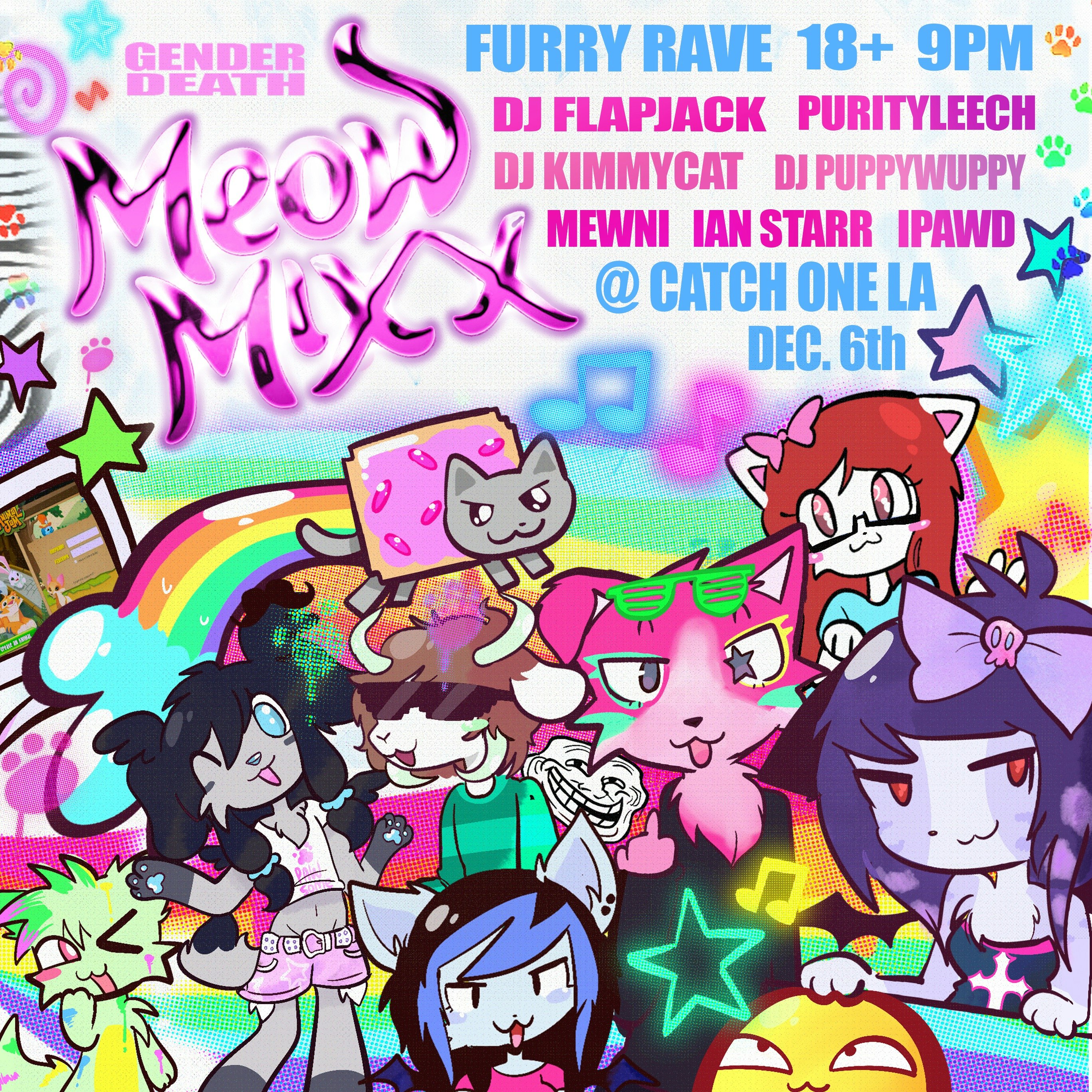 ZOMG !!? A furry-swag rave :O !!! MEOWMIXX is a FANDOM-first party celebrating fashion, old web & true OG furry culture ^\_^ with paw-some DJ sets & an artist alley that'll have ur tail wagging 4 moar ≽^•⩊•^≼ It's going to be the EPICEST CRINGIEST FURRY BASH to end this year,, so don't miss it or ELSE!! > :3 óÓÒò