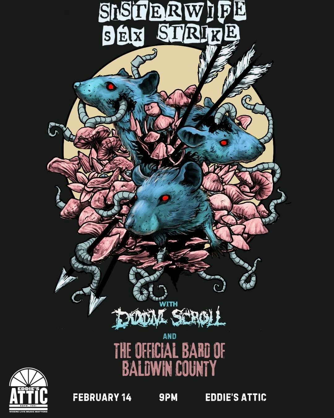 Folk punk legends Sister Wife Sex Strike & Doom Scroll are teaming up for a US megatour. They are stopping in Atlanta and will be joined by The Official Bard of Baldwin County.