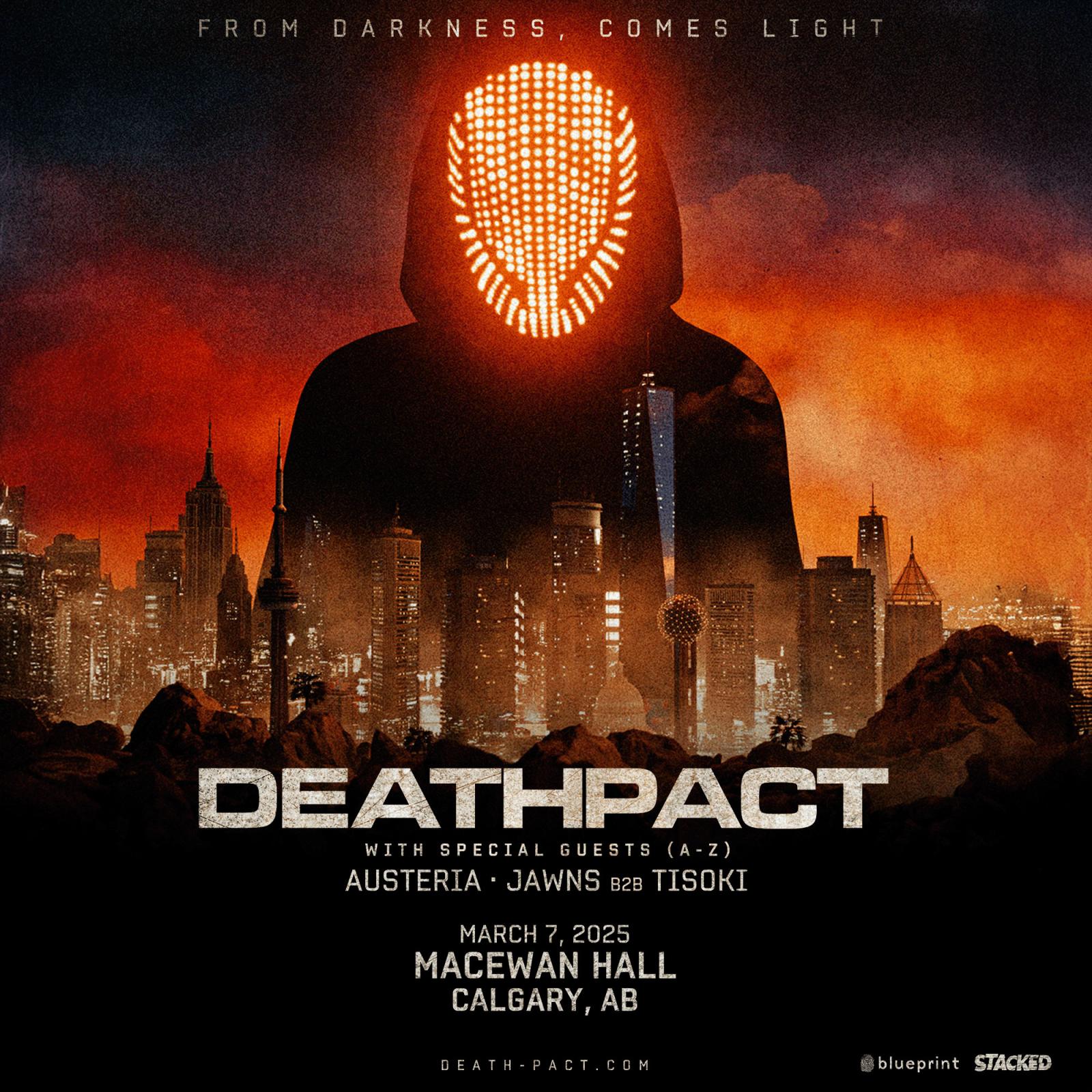 FROM THE DARKNESS, COMES LIGHT. Deathpact crafts a multisensory universe; interactive, puzzle-laden online experiences, cryptic visual motifs, and an innovative sonic palette invites listeners to become part of an ever-expanding story. They remain the anonymous harbinger of forward-thinking art, a reminder that FROM DARKNESS, LIGHT emerges – and with each release, the mystery deepens. Catch his return to Calgary, Friday March 7th at Macewan Hall.