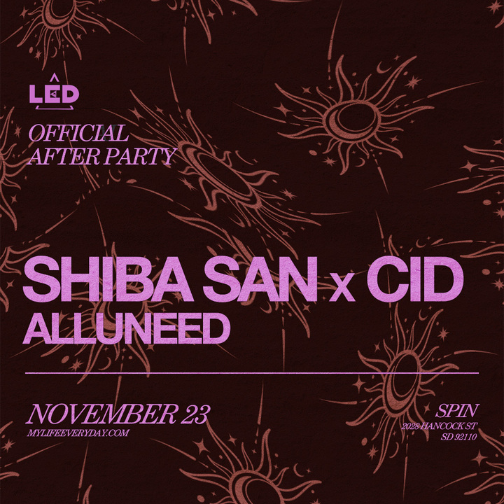 LED presents CID b2b SHIBA SAN (3 Hour Extended Set) After Party at Spin November 23, 2024 CID SHIBA SAN DOORS 9:00 PM 21+ - - - - - - - - - - - - - - - - - - - - - - - - - - - - - - - - - - - - - - - - - - - - - - - - - CID Website: https://cidmusic.com Facebook: https://www.facebook.com/CIDofficial Instagram: https://www.instagram.com/cidmusic/?hl=en Spotify: https://open.spotify.com/artist/4FCzCS0KEgb0rgySWINItO?si=tyK2SEM8QA6iFHGRTrN0zg SHIBA SAN Website: https://www.shibasan.com Facebook: https://www.facebook.com/shiba.san/ Instagram: https://www.instagram.com/shibasanmusic/?hl=en Spotify: https://open.spotify.com/artist/7Hr9bE0u9Rl5n6QahVNRnc?si=RXchMHZfQEOOJ-rRH-jxsQLED PRESENTS Website: www.myLifeEveryDay.com Instagram: www.instagram.com/ledpresents Facebook: www.facebook.com/ledpresents Twitter: www.twitter.com/LEDpresents