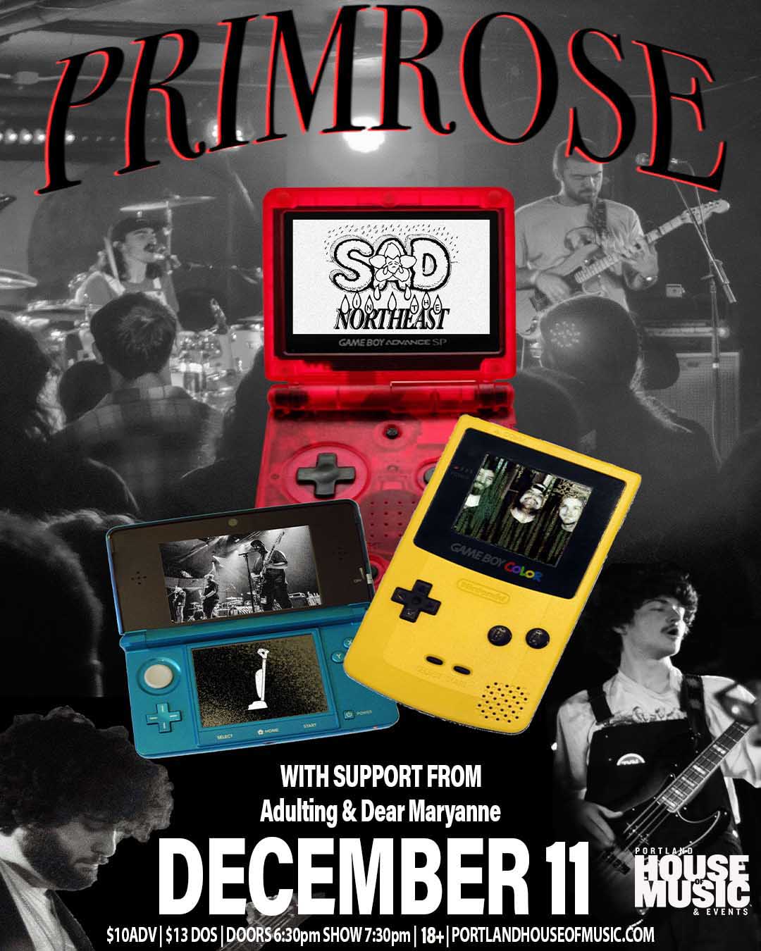 Primrose in an emo adjacent 4 piece from Portland, Maine. After their social media boom and the success of their first album Fallow, they are back at it with the long awaited release of their sophomore album "Sad in the Northeast." The band melds punchy pop punk riffs and heart on sleeve lyrics to deliver a sound entirely unique to them.