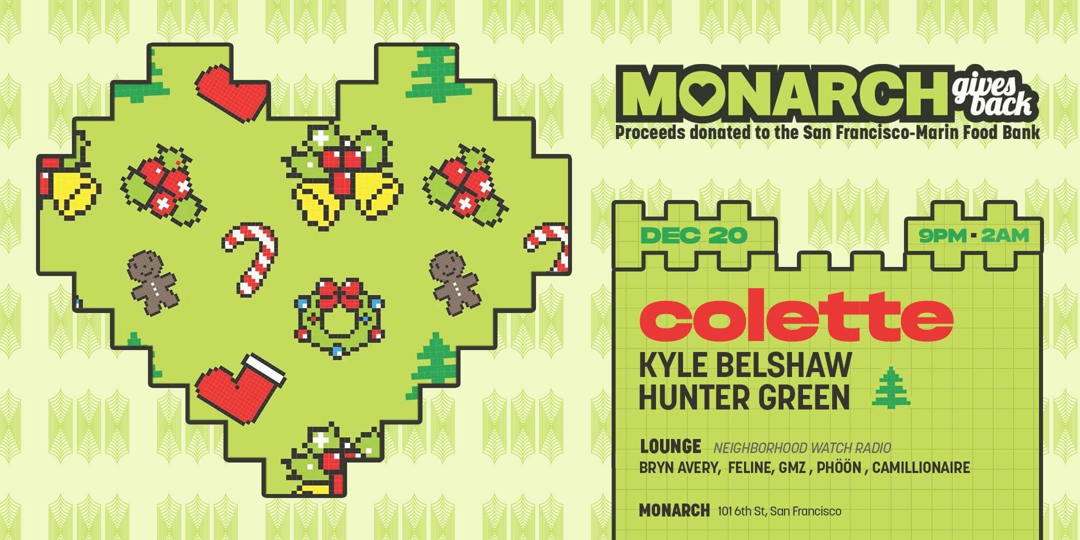 Monarch Gives Back is a 3-day event series focused on community, music, and charity. Proceeds from the events will be donated to the San Francisco-Marin Food Bank.