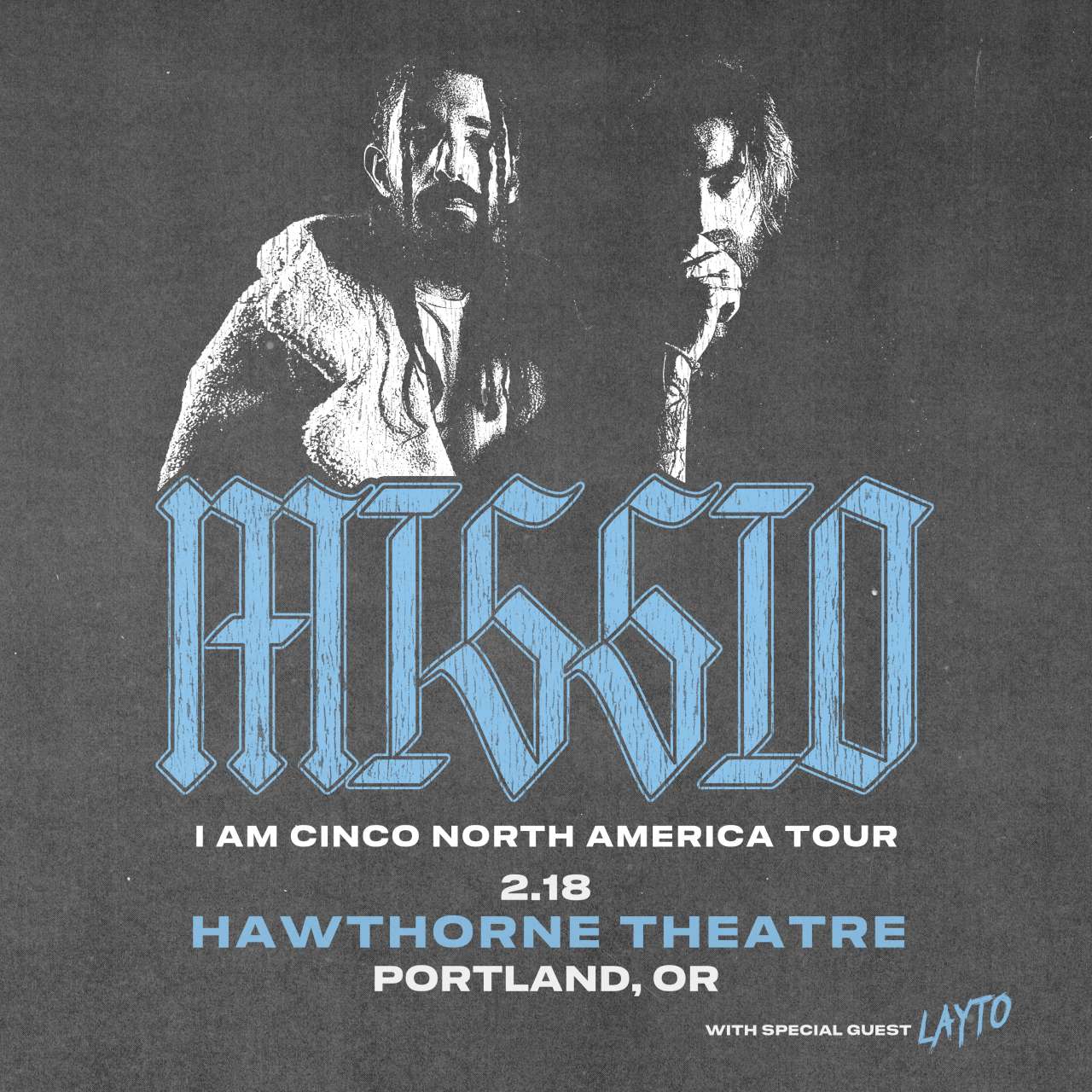Mammoth NW Presents: MISSIO - I AM CINCO TOUR w/ Layto Tuesday, February 18th, 2025 8:00PM Hawthorne Theatre All Ages | Bar w/ valid ID No refunds or exchanges. All sales final.