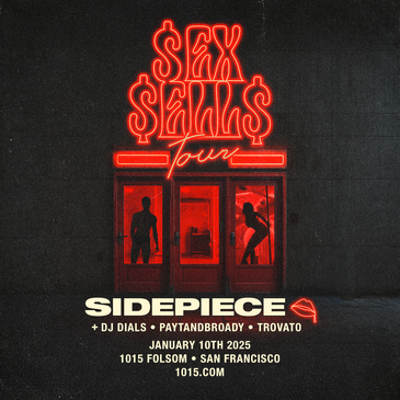FRIDAY, JANUARY 10th DJ Dials & 1015 Folsom Present: SIDEPIECE SUPPORT FROM: DJ DIALS PAYTANDBROADY TROVATO 10pm • 21+ Only
