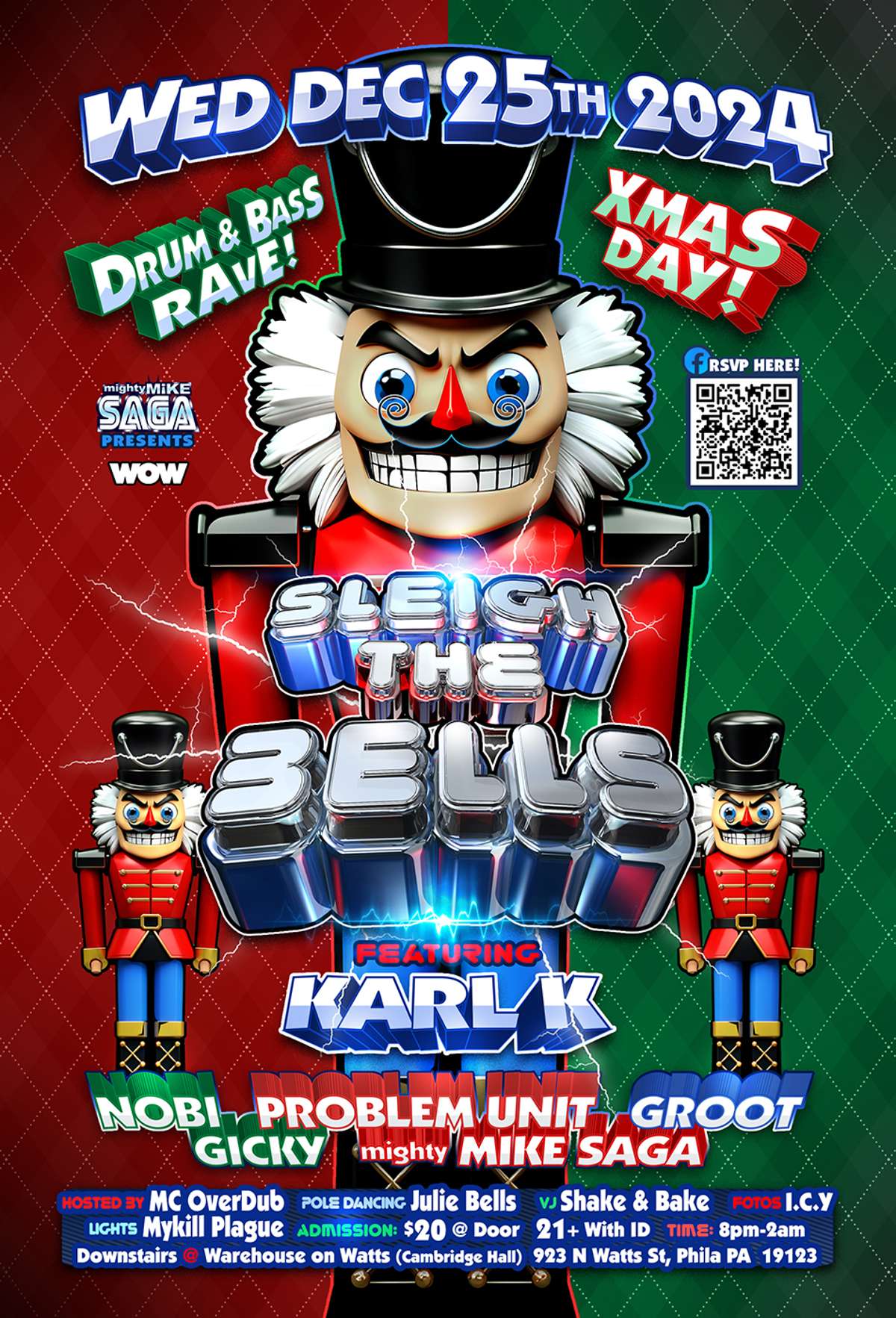 Boh Boh Boh Philly! This Christmas Day, Wednesday December 25th, 2024, Warehouse on Watts is transforming into the wildest, bass-pumping winter wonderland you've ever seen! We're ditching the sleighs and sugarplums for booming basslines and breakbeats at SLEIGH THE BELLS