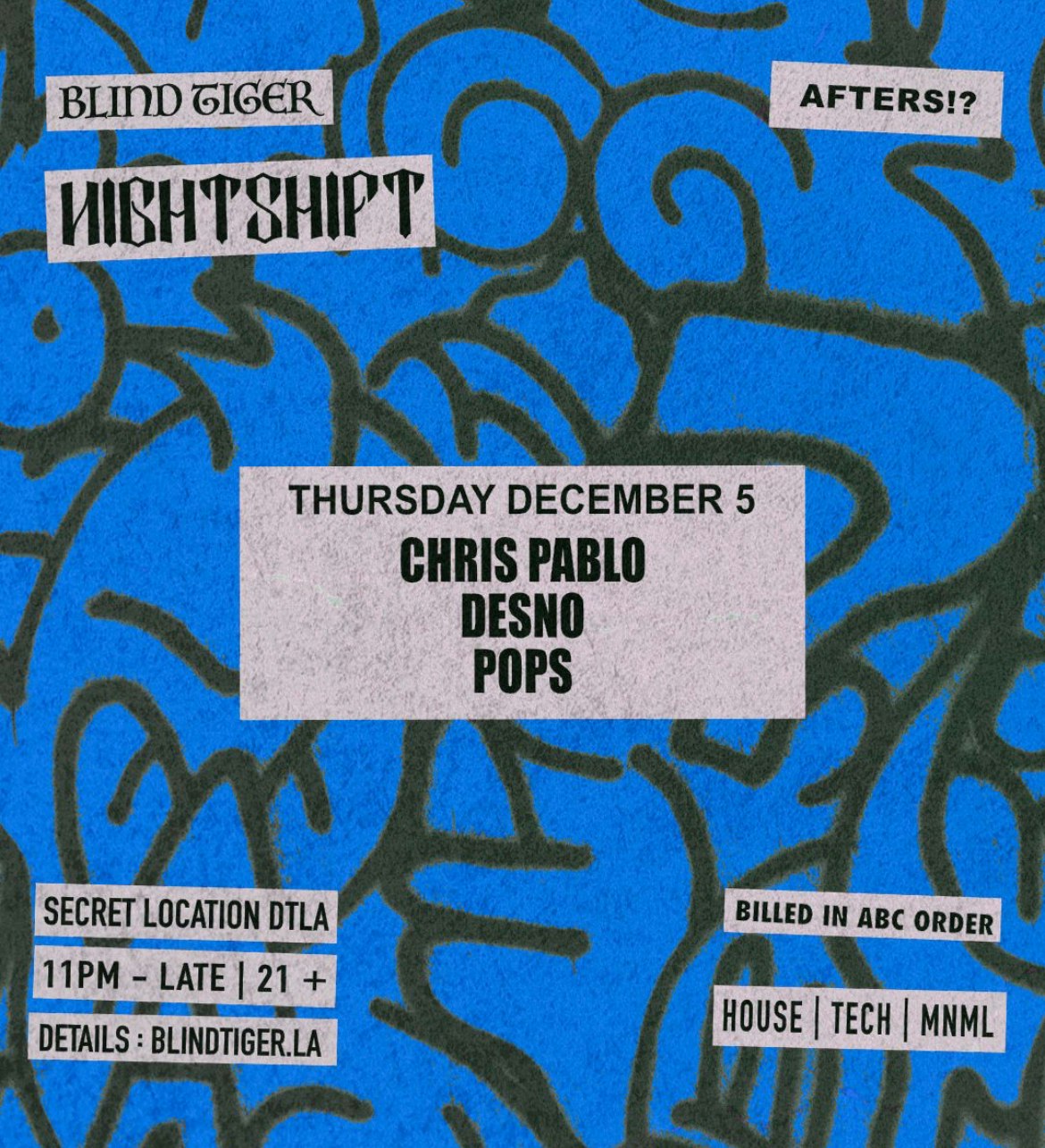 At any of our ‘Nightshift’ events you can expect to hear a strong minimal bass groove, paired with a relentless dark & sexy beat. HOUSE | TECH | MNML ADDRESS SENT WITH PURCHASE CONFIRMATION EMAIL. Presented by Blind Tiger. This is a 21+ event.