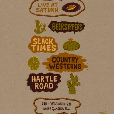 - Stacked show with Country Westerns, Hartle Road, Slack Times, & Beersippers at Saturn!