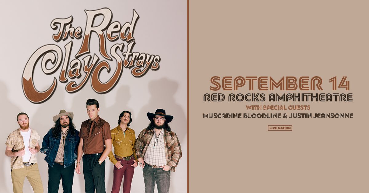 KBCO & Live Nation are thrilled to announce THE RED CLAY STRAYS live at Red Rocks Amphitheatre Sunday, September 14th, 2025.