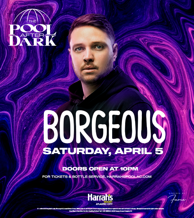 Join us at Harrah's Resort for an electrifying Saturday night at The Pool After Dark, where the vibrant Atlantic City nightlife comes to life. Dive into an evening filled with the most sought-after things to do, featuring the sensational Borgeous. This American DJ and music producer, known for his big room house, Dutch house, and future house beats, has achieved three Billboard Dance Radio Top 10s and captivated audiences worldwide with his high-energy performances and chart-topping hits like "Tsunami".
