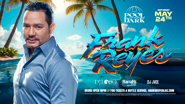 Experience the Prince of Bachata, Frank Reyes, live at The Pool After Dark in Harrah's Resort Atlantic City on Saturday, May 24. This Dominican sensation, known for hits like "Nada de Nada" and "Príncipe de la Bachata," will bring his romantic melodies and infectious rhythms to one of Atlantic City's hottest nightlife venues.