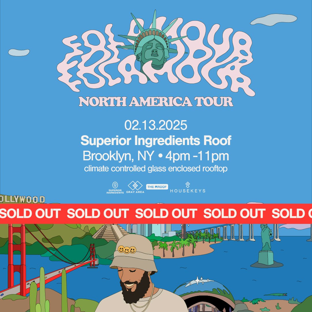 Folamour North American tour makes a stop in New York for an epic show at the climate-controlled, glass-enclosed The Roof of Superior Ingredients. Presented by Gray Area. This is a 21+ event
