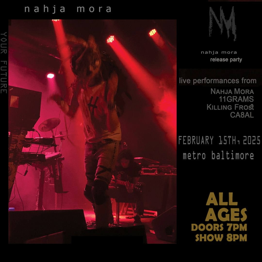 NAHJA MORA with 11grams, Killing Frost and Ca8al Saturday Feb. 15th 2025, Doors: 7:00 PM // Show: 8:00 PM All Ages Presented by Metro Gallery LLC. All Ages
