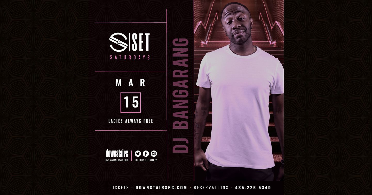 Set Saturdays with DJ Bangarang Doors at 8:30pm Ladies Night