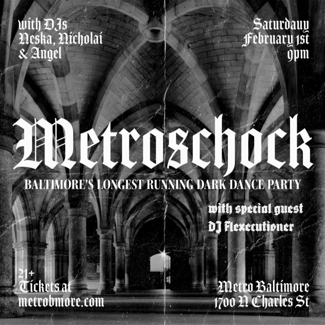 Baltimore's longest running dark dance party returns on the First Saturday of every month with resident DJs Neska, Nicholai and Angel playing dark beats from Goth and Industrial to Synthwave, 80s, 90s + more.