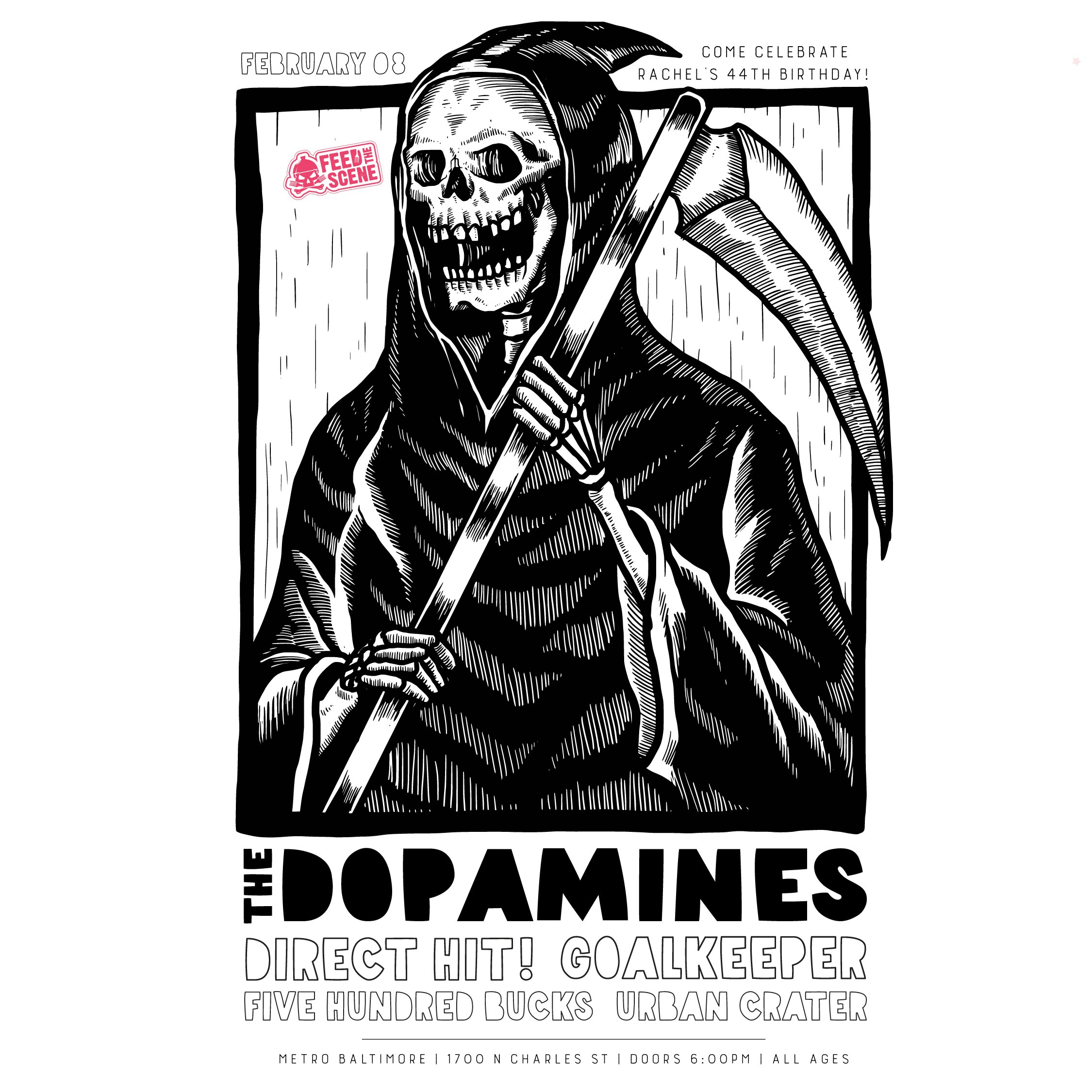Feed The Scene Presents: THE DOPAMINES with Direct Hit!, Goalkeeper, 500 Bucks, and Urban Crater Saturday February 8, 2024 Doors at 6:00 PM, Show at 6:30 PM All Ages Presented by Feed The Scene All ages