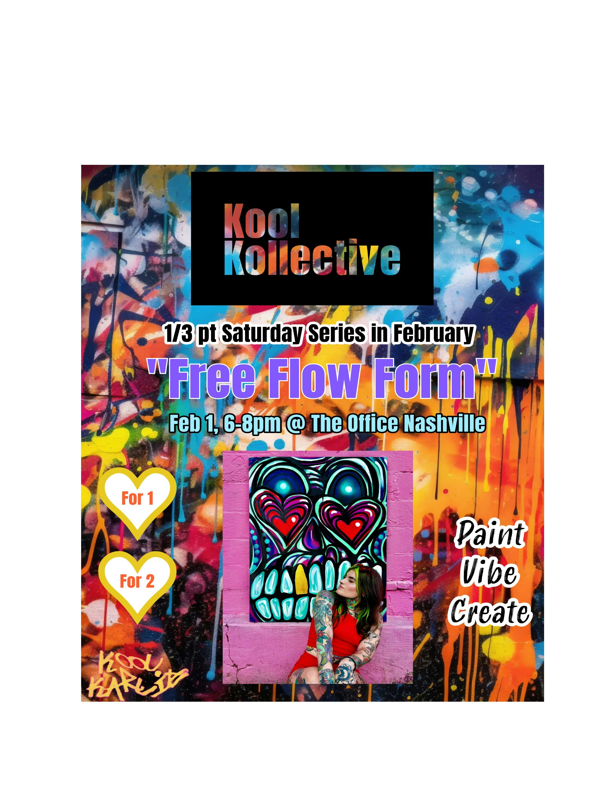 Get ready for a paint night like no other @ KOOL KOLLECTIVE! Kool Karlie's Freeform Painting Workshops combine creativity, music, and good vibes for an unforgettable experience. Whether you’re grooving to beats at "Free Flow Form" ( Feb 1,) bonding with a partner at "Brush and Bond" (Feb 15,) or embracing your inner Bob Ross at "Happy Trees" (Feb 22,) each session is designed for fun and freedom—no rules, just art. Your ticket includes all supplies, a vibe-filled atmosphere, and access to a discounted cocktail menu. Don’t miss this chance to sip, paint, and vibe with me—grab your spot and let’s create some magic!