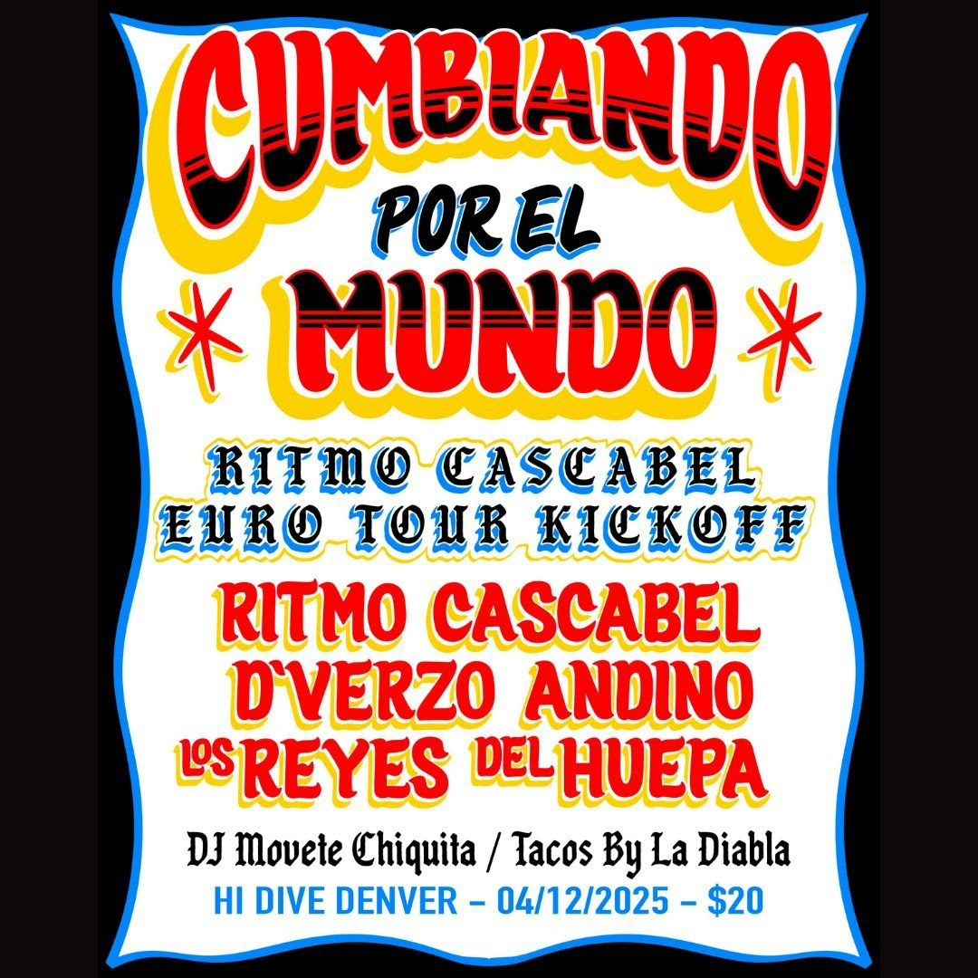 The Colorado Sound Presents: TOUR KICKOFF for RITMO CASCABEL with D'VERZO ANDINO + LOS REYES DEL HUEPA + MOVETE CHIQUITA + Tacos La Diabla 21+ $20 Presented by Hi-Dive. This is a 21+ event