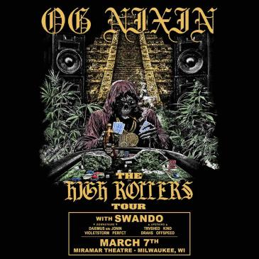 The Miramar Theatre and Ether Present: OG NIXIN: THE HIGH ROLLERS TOUR :: OG NIXIN :: [ https://soundcloud.com/og-nixin ] :: SWANDO :: [ https://soundcloud.com/swandodubz ] :: DAXIMUS :: [ https://soundcloud.com/iamdaximus ] :: JONIN :: [ https://on.soundcloud.com/GYaJGJsp5kBijJqb6 ] :: TRVSHED :: [ https://soundcloud.com/trvshed-wav ] :: VIOLET STORM :: [ https://soundcloud.com/violetstormofficial ] :: KIND :: :: PRFCT :: [ https://soundcloud.com/perfctmusic ] :: DRAHS :: [ https://soundcloud.com/drahsdubs ] :: OFFSPEED :: [ https://soundcloud.com/offspd ] All Ages Show || Doors 9pm 2844 N. Oakland Ave. Milwaukee, WI 53211