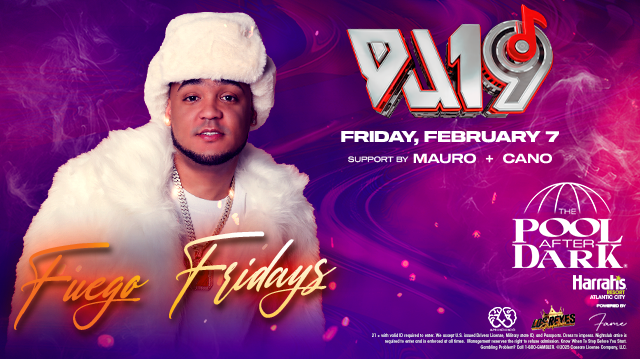 Experience the pinnacle of Atlantic City nightlife at The Pool After Dark this Friday night with our monthly installment of FUEGO FRIDAYS. This latin music event features DJ 19. The Pool After Dark is not just a club, it's an unforgettable nightlife experience. With a 3,500 sq. foot, 86,000-gallon pool at its center, this multi-level club features tropical designs, cabanas, and VIP sections. Enjoy the VIP experience by reserving a table, poolside daybed, cabana, or large-party bungalow, and let our bottle service servers provide first-class service.