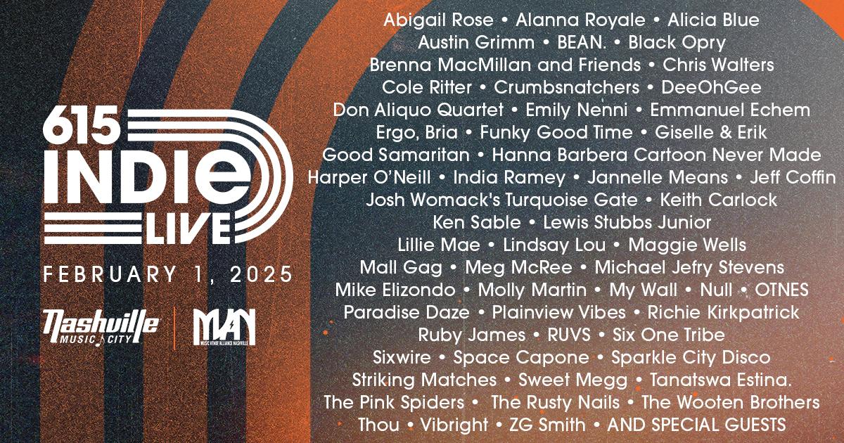 615 Indie Live is a one-day celebration of local music and independent venues, produced by our friends at MVAN and Visit Music City. Experience the best of Nashville's local music scene with over 50+ artists across 14 independent venues, running from noon to 3 a.m. All just for $15! Proceeds benefit Music Venue Alliance Nashville and their Emergency Relief Fund, supporting our indpendent music venues community.