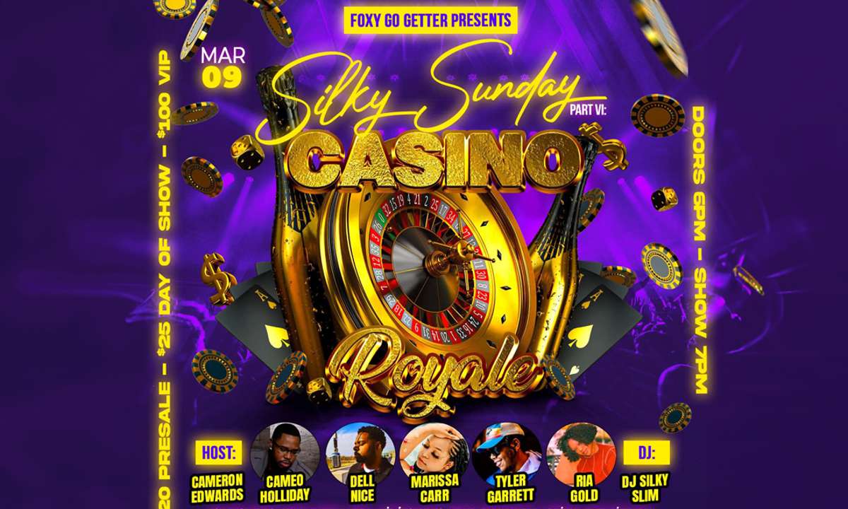 Silky Sunday returns for Part VI: Casino Royale! Join us for a night of mock gambling and a curated lineup of local RnB. GA includes small appetizers catered by Highly Flavored Catering, while VIP includes a food buffet, two drinks, and a Foxy gift bag. VIP tables seat 2. Must purchase whole table.