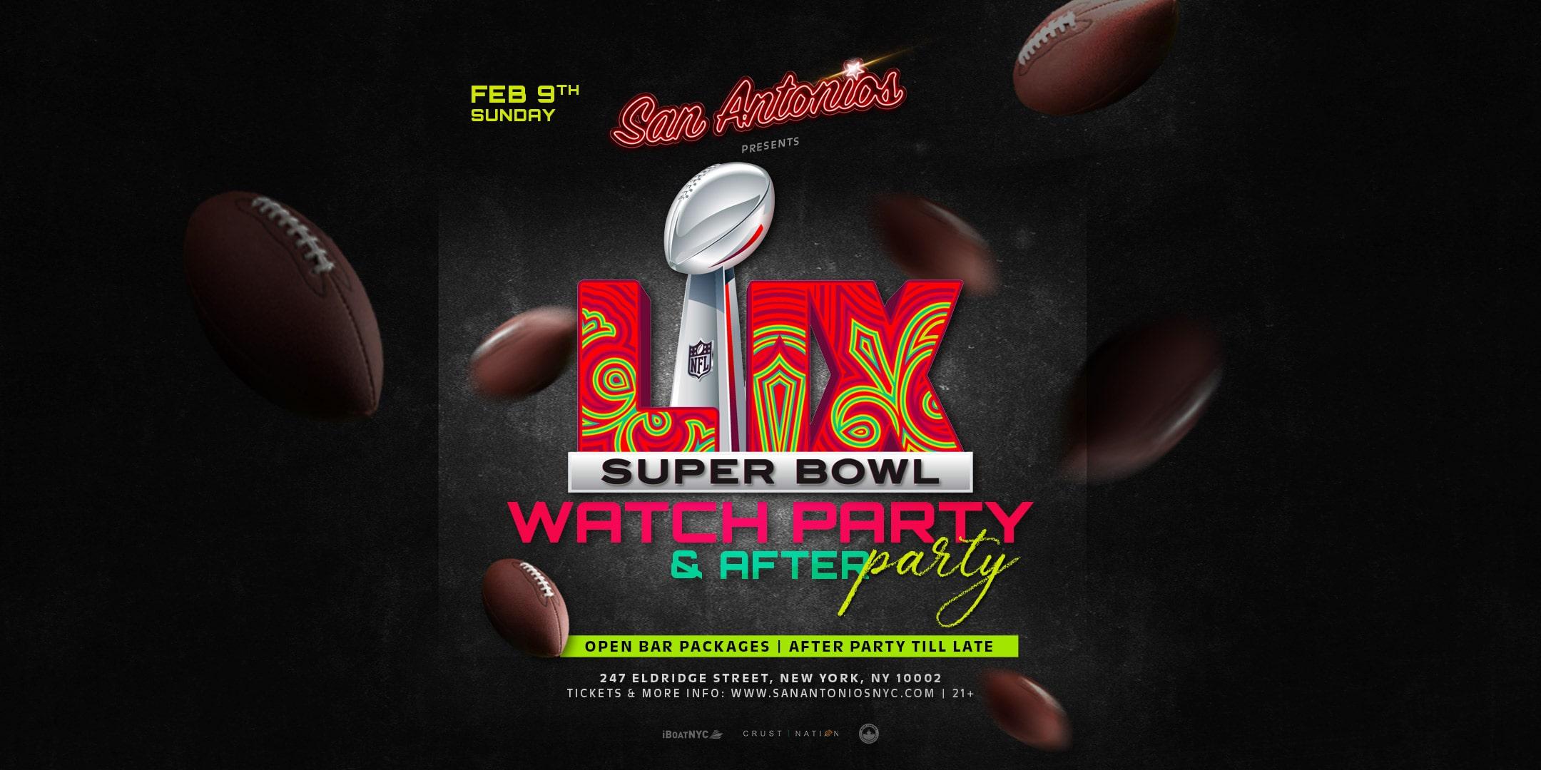 Join us starting 5PM for 2025 "Big Game" viewing party on Sunday, February 9 hosted at the San Antonios in the heart New York City's Lower East Side.