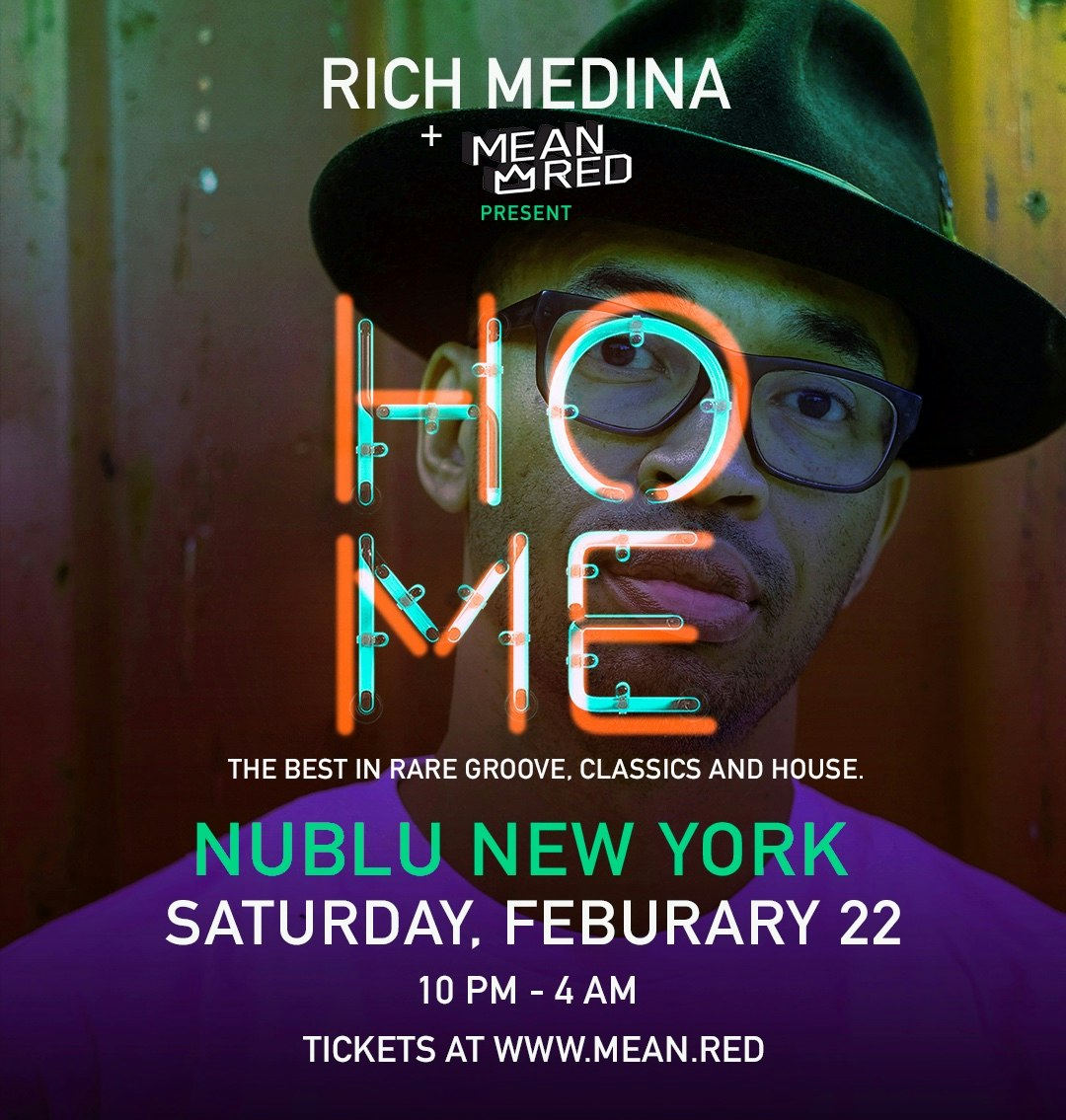 Rich Medina is bringing HOME to Nublu on Saturday, February 22nd. The best in rare groove, classics and house. Presented by MeanRed. This is a 21+ event