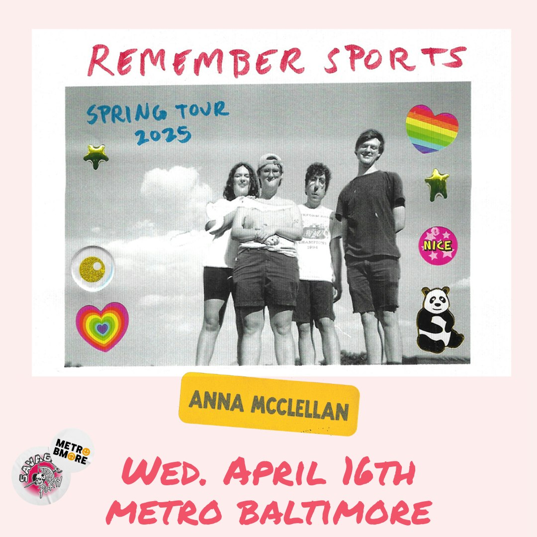 REMEMBER SPORTS with Anna McClellan Wed. Apr. 16th 2025 Doors: 7:00 PM // Show: 8:00 PM All Ages Presented by Metro Gallery LLC. All Ages