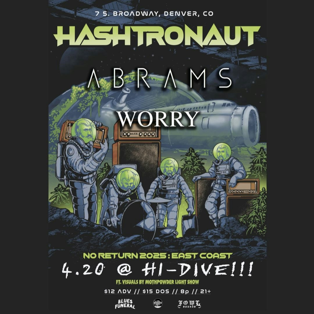 4/20 Tour Return Show for HASHTRONAUT with ABRAMS + WORRY With Visuals by MOTHPOWDER LIGHT SHOW Doors 7pm Presented by Hi-Dive. This is a 21+ event