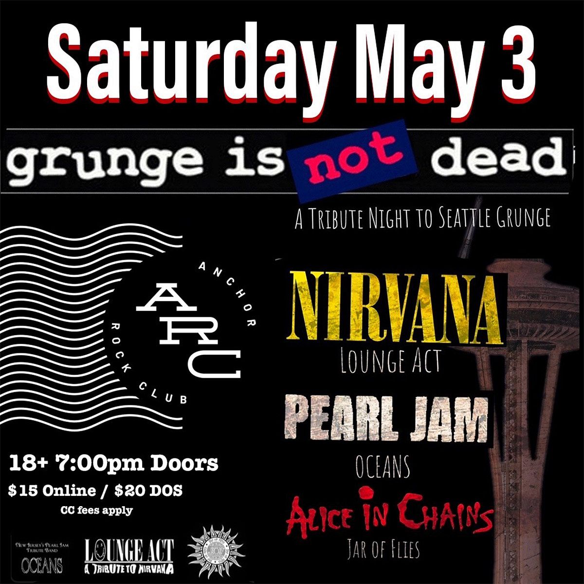 Grunge Is Not Dead Tribute: NIRVANA by Lounge Act // PEARL JAM by Oceans // ALICE IN CHAINS by Jar of Flies Doors - 7:00 pm // Showtime -7:30 pm // 18+ Anchor Rock Club // 247 S New York Avenue // Atlantic City NJ